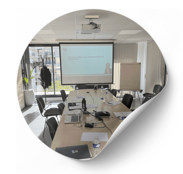 Oui, nous menons un diagnostic de 20 minutes avec vous pour identifier vos enjeux spécifiques (réorganisation, nouveaux outils, changement de direction...). Les exercices pratiques sont ensuite contextualisés à vos problématiques réelles.