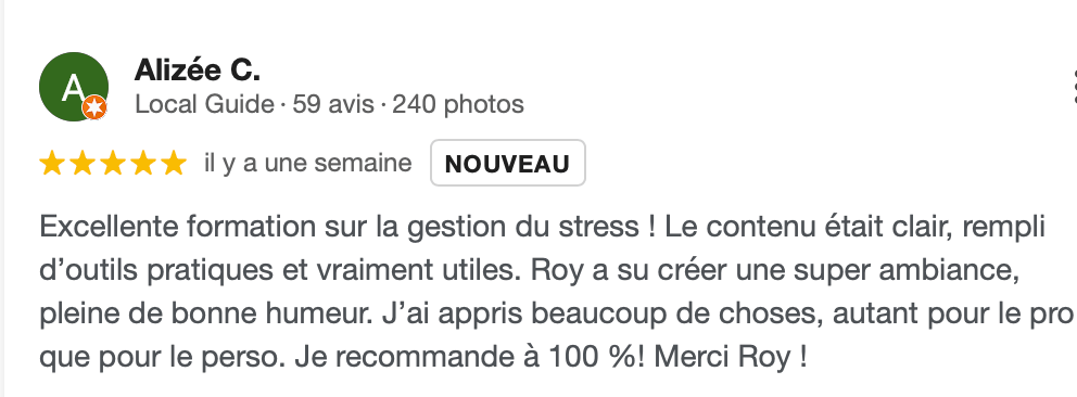 Roy nous a fait une formation complete à mon équipe et moi même et nous avons été séduits ! Merci pour tes connaissances, tes exercices pratiques et ton énergie ! Plus qu'une formation, un team building :)